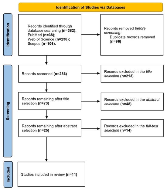 Following the initial database search, all retrieved articles were exported and the duplicates were removed using EndNote X8 (EndNote version 20.2.1; Clarivate Analytics, New York, NY, USA). Subsequently, a screening process was conducted based on the above-mentioned inclusion and exclusion criteria. This screening involved three phases: reviewing the titles, examining the abstracts, and, finally, assessing the full texts of the articles. The steps of this process are illustrated in the PRISMA flow diagram, following the PRISMA-ScR checklist and explanation [41].