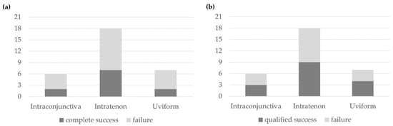 - Jose, P.; Teixeira, F.J.; Barao, R.C.; Sens, P.; Abegao Pinto, L. Needling after XEN gel implant: What’s the efficacy? A 1-year analysis. Eur. J. Ophthalmol. 2021, 31, 3087–3092. [Google Scholar] [CrossRef] [PubMed]