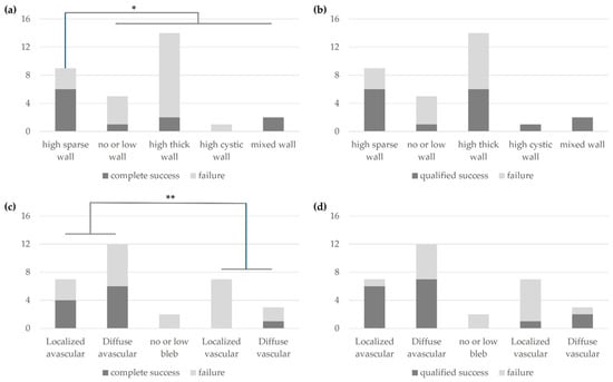 - Kim, Y.; Lim, S.H.; Rho, S. Bleb Analysis Using Anterior Segment Optical Coherence Tomography and Surgical Predictors of XEN Gel Stent. Transl. Vis. Sci. Technol. 2022, 11, 26. [Google Scholar] [CrossRef]