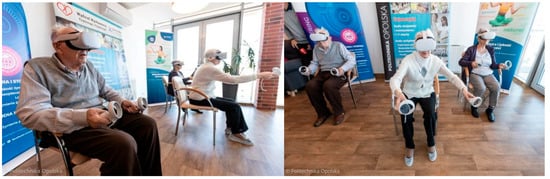 - Mazurek, J.; Cieślik, B.; Wrzeciono, A.; Gajda, R.; Szczepańska-Gieracha, J. Immersive Virtual Reality Therapy Is Supportive for Orthopedic Rehabilitation among the Elderly: A Randomized Controlled Trial. J. Clin. Med. 2023, 12, 7681. [Google Scholar] [CrossRef]