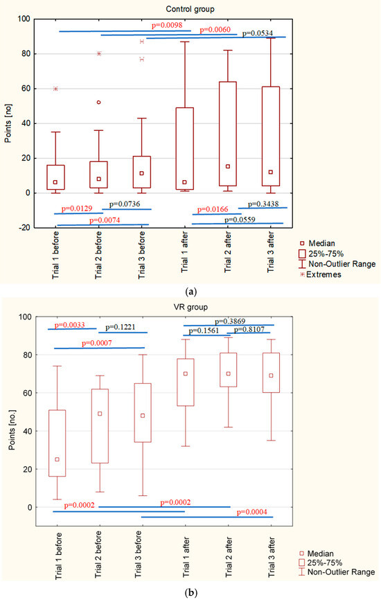 | VR Group T0 (Before) | VR Group T1 (After) | Control Group T0 (Before) | Control Group T1 (After) | |