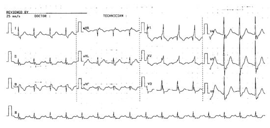 - Bayés de Luna, A.; Carrió, I.; Subirana, M.T.; Torner, P.; Cosín, J.; Sagués, F.; Guindo, J. Electrophysiological Mechanisms of the SI SII SIII Electrocardiographic Morphology. J. Electrocardiol. 1987, 20, 38–44. [Google Scholar] [CrossRef]