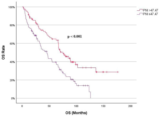 | Variables, Median (Min–Max) | PNI ≤ 47.47 (n = 92) | PNI > 47.47 (n = 83) | Total (n = 175) | p |
