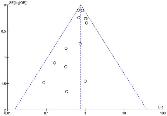 The funnel plot analyses included studies on the overall effectiveness of metformin in preventing diabetes in high-risk adults [23,24,25,28,34,35,36,37,40,41,42,45,46]; Egger’s test p-value = 0.299.