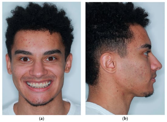 Many orthodontic patients undergo treatment for Class II malocclusion to improve both occlusal function and facial aesthetics []. This malocclusion often results from underlying skeletal and dental discrepancies, such as maxillary excess, mandibular deficiency, or a combination of both involving the maxilla, mandible, and dentoalveolar structures. Treatment strategies for Class II malocclusions vary based on factors such as growth stages, anteroposterior discrepancies, facial aesthetics, airway considerations, and patient compliance. When there is a significant discrepancy between the maxilla and the mandible, camouflage treatments may lead to periodontal complications such as gingival recession in the lower anterior teeth, root resorption, deteriorating facial aesthetics, and occlusal instability []. Therefore, for adult patients with severe skeletal Class II malocclusions, a combination of orthodontic treatment and orthognathic surgery is preferred to improve both the bite and the facial profile []. In cases of mandibular retrusion, a Bilateral Sagittal Split Osteotomy (BSSO) surgical procedure is often needed to perform forward and downward movements, correct the malocclusion, and achieve a good aesthetic result.