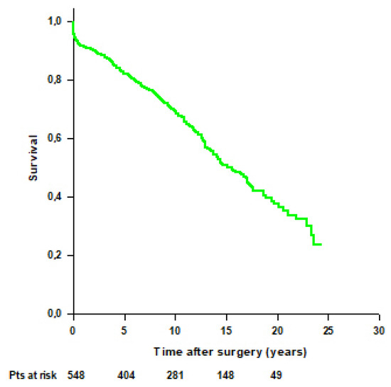 Patients’ survival after modified Bentall procedure in the whole cohort.