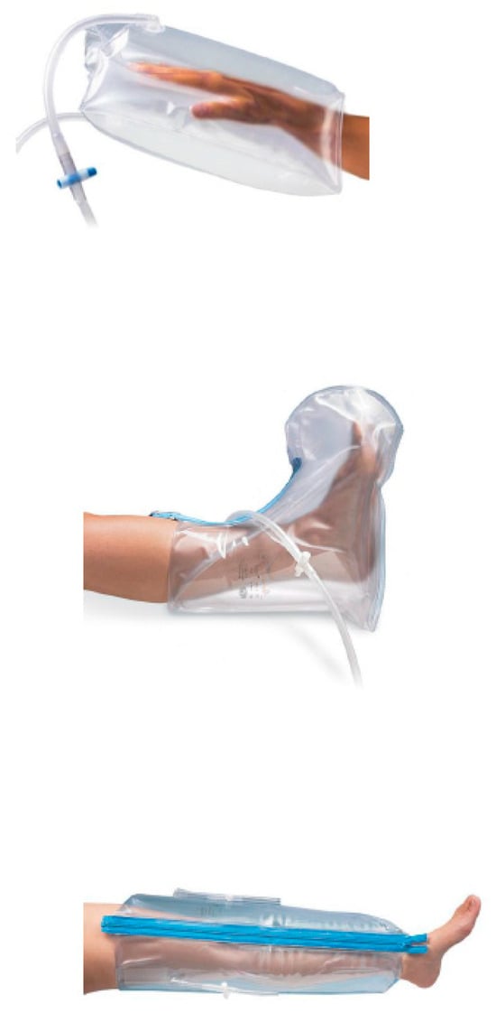 The EG had CPPS applied within a protocol of activities based on low-load recruitment in closed kinetic chain and correct alignment of the affected limbs, applied together with physiotherapy treatment. Urias–Johnstone air splints (Figure 1) were used. These splints were specifically developed and designed for the treatment of neurological patients with moderate to severe motor control deficits. The choice of splint was established based on the level of motor recovery, the capacity for activation and the specificity of the selected task.