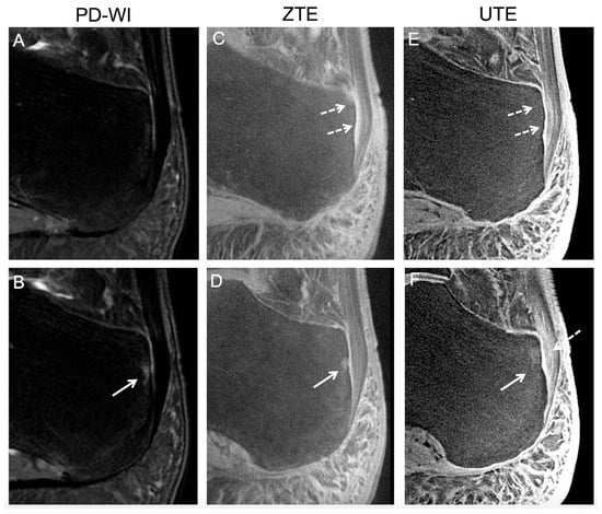 Figure 3B). This proportion was significantly higher with UTE versus PD-WI (