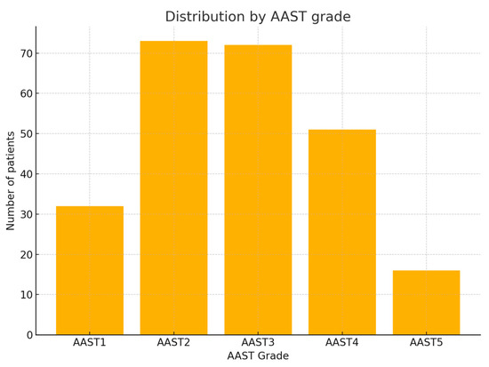 Distribution by AAST grade. AAST: American Association for the Surgery of Trauma.