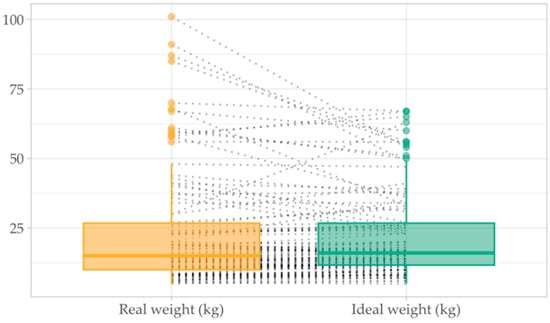 4.2. Anthropometric Measurements (Weight, Ideal Weight, IP, Height, BMI)