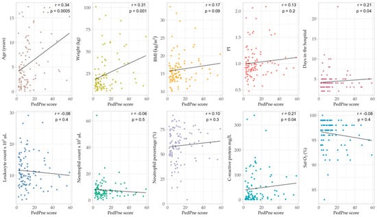 - Ciuca, I.M.; Dediu, M.; Pop, L.L. Pediatric pneumonia (PedPne) lung ultrasound score and inflammatory markers: A pilot study. Pediatr. Pulmonol. 2022, 57, 576–582. [Google Scholar] [CrossRef]