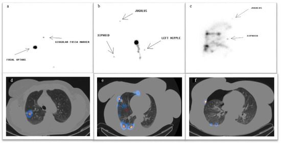 - Bellomi, M.; Veronesi, G.; Trifirò, G.; Brambilla, S.; Bonello, L.; Preda, L.; Casiraghi, M.; Borri, A.; Paganelli, G.; Spaggiari, L. Computed tomography-guided preoperative radiotracer localization of nonpalpable lung nodules. Ann. Thorac. Surg. 2010, 90, 1759–1764. [Google Scholar] [CrossRef]