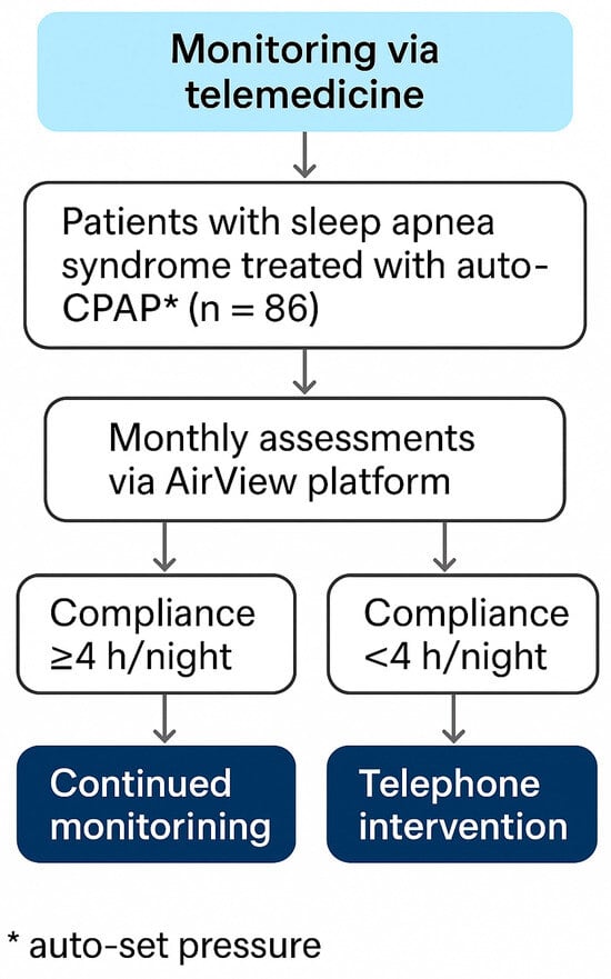- Cooper, J.R.; Acker, K.A.; Geyer, J.D.; Henderson, M.M.; Henderson-Mitchell, R.; Higginbotham, J.C. Optimizing Positive Airway Pressure Compliance and Outcomes in Rural Patients with Obstructive Sleep Apnea Through Telehealth. Int. J. Environ. Res. Public Health 2025, 22, 522. [Google Scholar] [CrossRef]