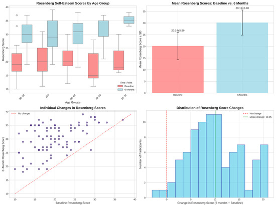 - Self-esteem changes vs. WHOQOL improvement: r = 0.153 (p = 0.159).