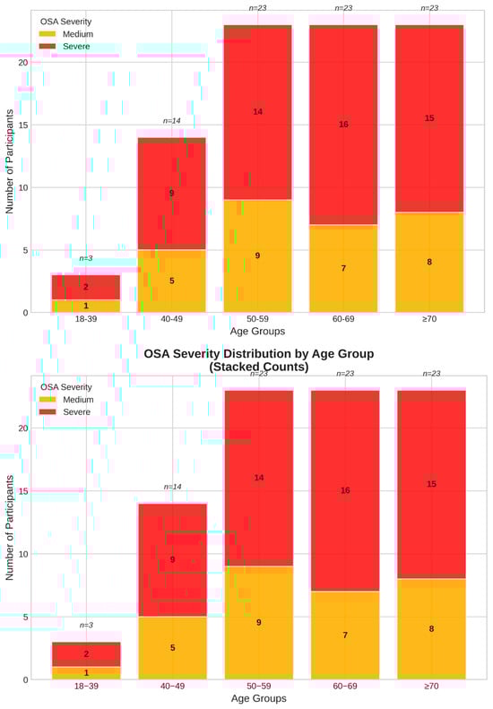 | Moderate OSA (15–29.9 events/hour) | 23.1 ± 4.0 * | - | - | - | 30 (34.9) |