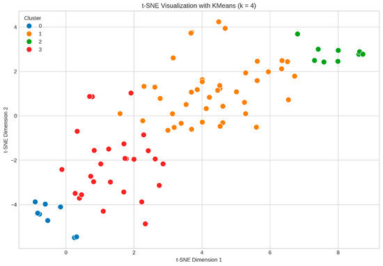 - Calinski–Harabasz Index: Ratio of between-cluster to within-cluster dispersion (higher values indicate better-defined clusters). This index had a maximum of 33.60 at k = 4.