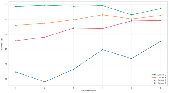 3.6.3. Longitudinal Adherence Patterns by Cluster