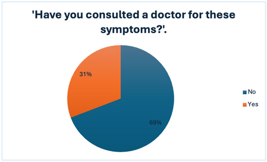 Notably, this avoidance occurred even though the symptoms were present and recurrent, as further explored in the subsequent analysis of symptom frequency and perceived impact on daily life, presented in Figure 1 and Figure 2. These findings suggest that symptom burden alone may not be sufficient to prompt medical consultation and point toward additional psychological or social barriers.