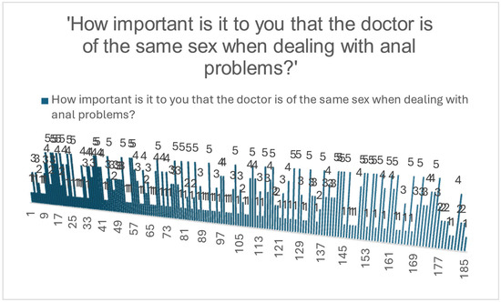 Distribution of perceived importance regarding physician sex when addressing anal problems.