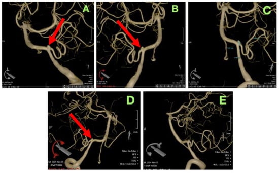 - Yin, Q.; Guo, H.; Wei, J.; Liu, P.; Lv, M.; Li, Y. Posterior Inferior Cerebellar Artery Aneurysms: Comparison of Results of Surgical and Endovascular Managements at One Single Center. Neurol. India 2020, 68, 1115–1124. Available online: https://journals.lww.com/neur/fulltext/2020/68050/posterior_inferior_cerebellar_artery_aneurysms_.28.aspx (accessed on 5 March 2025). [CrossRef]