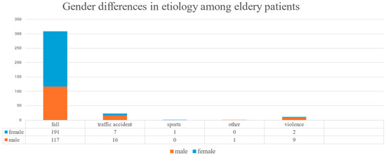 Gender differences in midfacial fracture etiology among elderly patients (≥65 years).