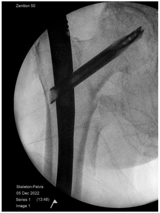 - Petfield, J.L.; Visscher, L.E.; Gueorguiev, B.; Stoffel, K.; Pape, H.-C. Tips and tricks to avoid implant failure in proximal femur fractures treated with cephalomedullary nails: A review of the literature. OTA Int. 2022, 5, e191. [Google Scholar] [CrossRef]
