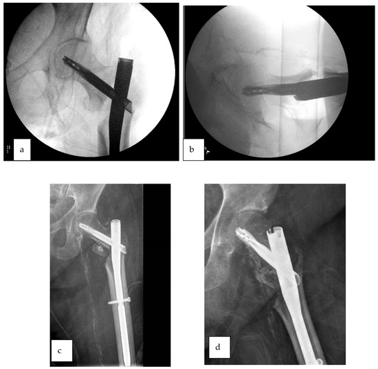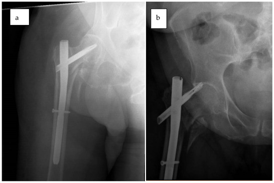- Turgut, A.; Kalenderer, Ö.; Karapınar, L.; Kumbaracı, M.; Akkan, H.A.; Ağuş, H. Which factor is most important for occurrence of cutout complications in patients treated with proximal femoral nail antirotation? Retrospective analysis of 298 patients. Arch. Orthop. Trauma Surg. 2016, 136, 623–630. [Google Scholar] [CrossRef]