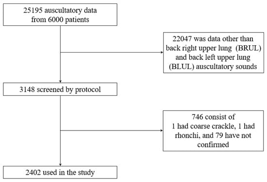 - Sarkar, M.; Madabhavi, I.; Niranjan, N.; Dogra, M. Auscultation of the respiratory system. Ann. Thorac. Med. 2015, 10, 158–168. [Google Scholar] [CrossRef]