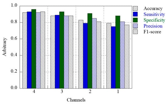 - The predictive classification rate and accuracy improved as the number of channels used to measure respiratory sounds increased. Multi-channel lung sounds contained more features for each respiratory sound, allowing the classifier to perform accurate classifications. This facilitates an accurate classification in cases with numerous external noise signals.