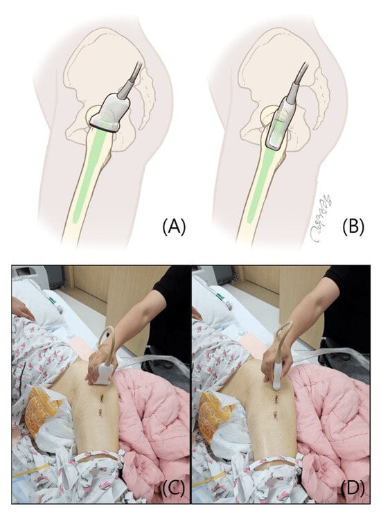 Ultrasound evaluation of the hip is typically performed using a curvilinear probe [57]. However, in this study, we used a linear probe. While the curvilinear probe provides better penetration for visualizing deep structures, it has limitations in accurately assessing muscle and tendon damage. In contrast, the linear probe allows for more detailed imaging for superficial tissues, although offering lower penetration for deeper tissues [58]. In this study, we first performed a preliminary assessment to confirm the probe’s penetration capabilities. The patients were positioned in the lateral position to minimize tissue depth, and a 12 L probe was used, which allowed simultaneous observation of both superficial and deep tissues. Additionally, the appropriate preset for deep tissue imaging was applied to offset the limitations of the linear probe. This approach enabled accurate evaluation of muscle and tendon injuries, which were the primary focus of this study.