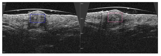 In this study, skin echogenicity within the scarred areas was assessed before and after the therapy, and the results were compared. The structure of each scar was evaluated by calculating the proportion of bright pixels to the total number of pixels (TP—total pixels) in the selected region of the ultrasound image. After obtaining ultrasound images, thickness and echogenicity were evaluated on a personal computer using the software provided by the manufacturer of the ultrasound device. Pixel classification was defined as follows: LEP (Low Echogenic Pixels): dark pixels, range 0–30; MEP (Medium Echogenic Pixels): range 50–150; HEP (High Echogenic Pixels): range 200–255 [25,26]. For the purpose of scar evaluation, the MEP and HEP ranges (150–255) within the region of interest were analyzed.