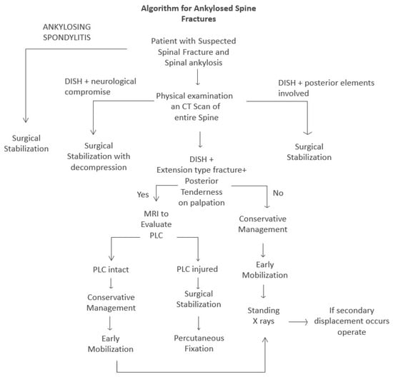 Proposed management algorithm for spinal fractures in patients with ankylotic spines.