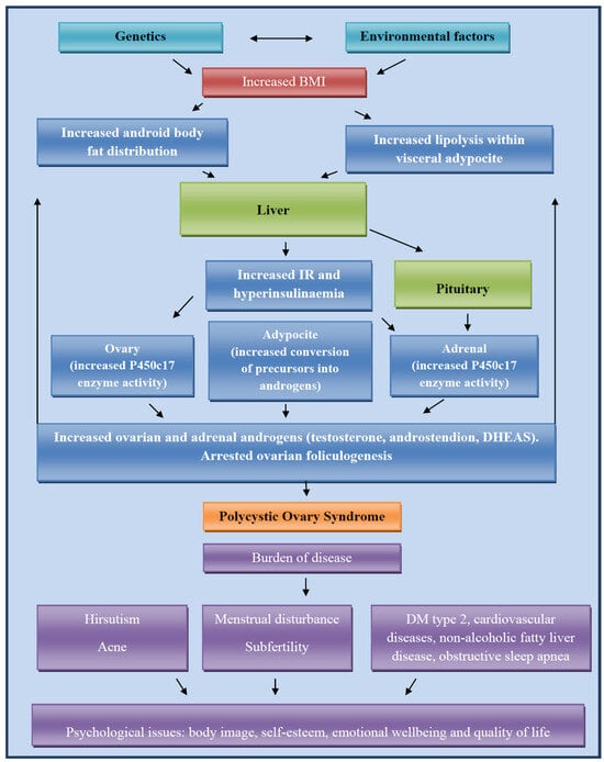 - Glueck, C.J.; Goldenberg, N. Characteristics of obesity in polycystic ovary syndrome: Etiology, treatment, and genetics. Metabolism 2019, 92, 108–120. [Google Scholar] [CrossRef]