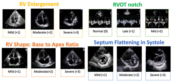 - Arkles, J.S.; Opotowsky, A.R.; Ojeda, J.; Rogers, F.; Liu, T.; Prassana, V.; Marzec, L.; Palevsky, H.I.; Ferrari, V.A.; Forfia, P.R. Shape of the right ventricular Doppler envelope predicts hemodynamics and right heart function in pulmonary hypertension. Am. J. Respir. Crit. Care Med. 2011, 183, 268–276. [Google Scholar] [CrossRef]
