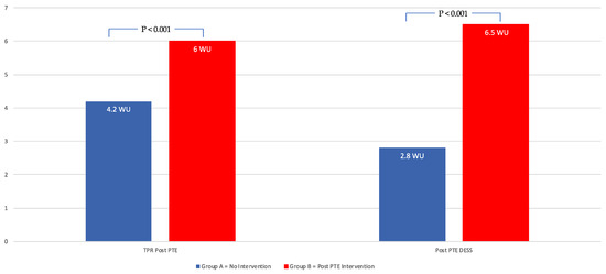 | TPR (WU) | 4.2 ± 1.6 | 6 ± 2.5 | <0.001 |