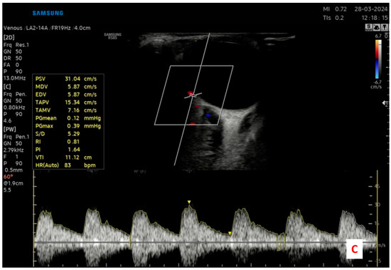 Before the procedure, each patient received a detailed explanation of the examination technique. Patients were then instructed to lie in a supine position with their head elevated at approximately 30 degrees. The eyes were gently closed, and patients were asked to maintain a steady gaze in the primary position, looking straight ahead, under closed eyelids, to minimize ocular motion. The ultrasound probe was positioned horizontally over the upper eyelid to acquire an axial view of the orbit. To avoid external pressure that could affect blood flow dynamics, minimal transducer pressure was applied to the globe. An adequate amount of coupling gel was used to ensure optimal acoustic contact without direct compression of the eyeball.