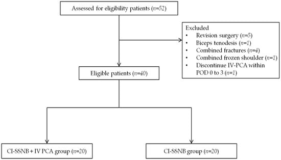 APA StyleHong, S.-y., Lee, D.-w., Kim, J.-h., & Hyun, Y.-s. (2025). Comparative Effectiveness of Continuous Intra-Operative Suprascapular Nerve Block (CI-SSNB) with and Without Intravenous Patient-Controlled Analgesia (IV-PCA) on Acute Post-Arthroscopy Pain: A Retrospective Cohort Study. Journal of Clinical Medicine, 14(16), 5809. https://doi.org/10.3390/jcm14165809