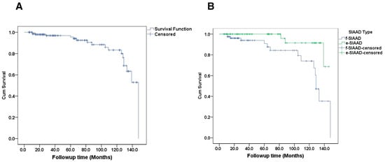 | Patient Number | Sex/Age | SIAAD Type | SIAAD-Related Symptoms | Acute Chronicity | Cardiovascular Risk Factor | AAA | Comorbidity | Treatment | Follow-Up (Months) | Time of Death Month | Death Cause |