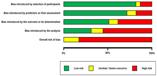 The quality assessment was performed using the PROBAST (Prediction model Risk of Bias Assessment Tool (Figure 3 and Figure 4).