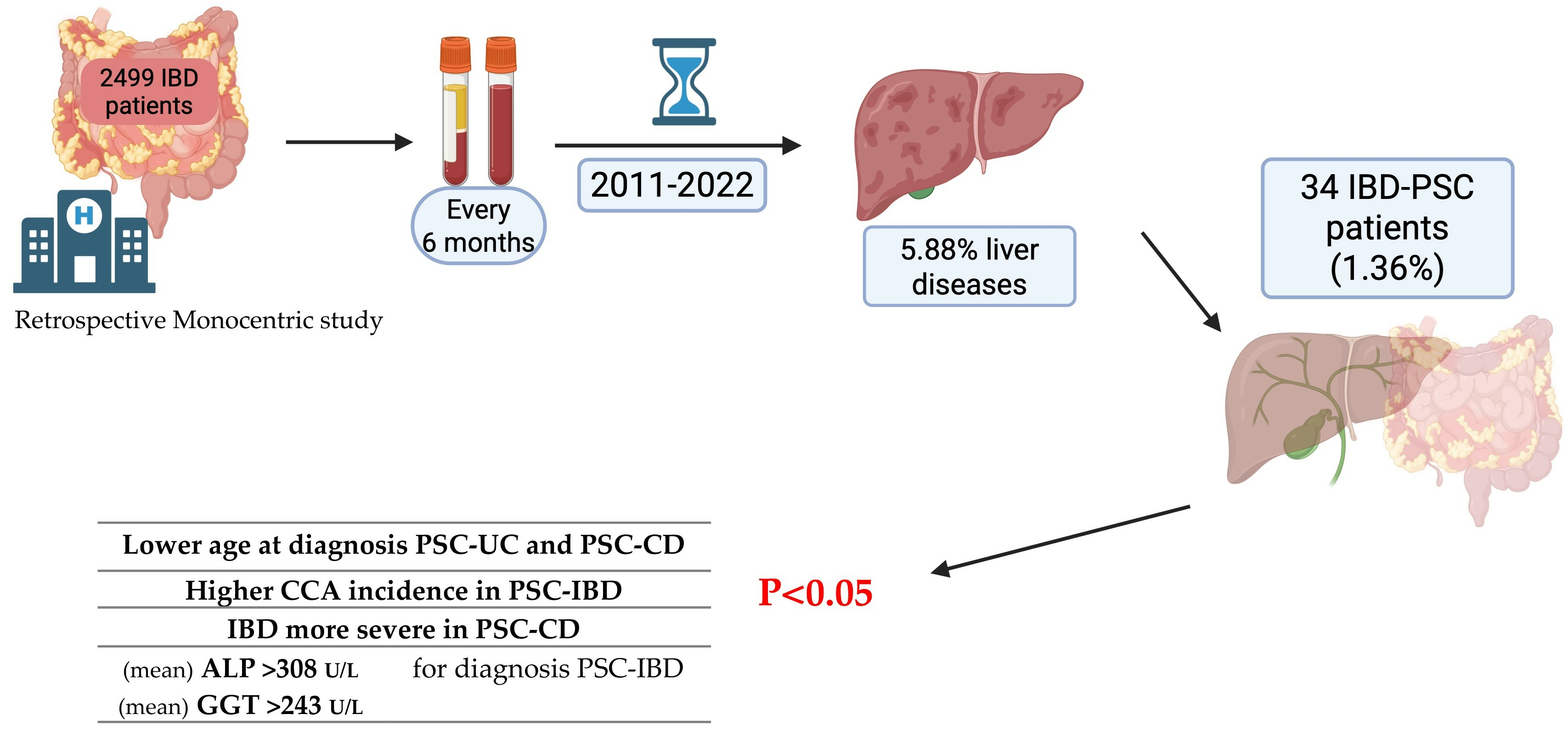 - Franceschet, I.; Cazzagon, N.; Del Ross, T.; D’Incà, R.; Buja, A.; Floreani, A. Primary sclerosing cholangitis associated with inflammatory bowel disease: An observational study in a Southern Europe population focusing on new therapeutic options. Eur. J. Gastroenterol. Hepatol. 2016, 28, 508–513. [Google Scholar] [CrossRef] [PubMed]