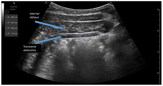 - Tahan, N.; Khademi-Kalantari, K.; Mohseni-Bandpei, M.A.; Mikaili, S.; Baghban, A.A.; Jaberzadeh, S. Measurement of superficial and deep abdominal muscle thickness: An ultrasonography study. J. Physiol. Anthropol. 2016, 35, 17. [Google Scholar] [CrossRef]