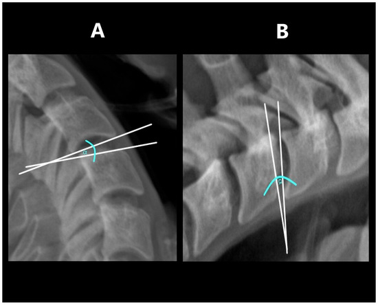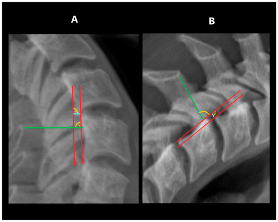 The following exclusion criteria were applied: kyphotic positioning of the cervical spine, congenital defects, post-surgical, post-traumatic and neoplastic lesions, or radiological features of osteoporosis and spinal instability, defined as horizontal displacement of adjacent vertebral bodies in functional projections by ≥4 mm [6,7]. Where the body of C6 was not included in the X-ray, the Cobb angle measurements were abandoned; however, other measurements were taken at the other levels included in the study.