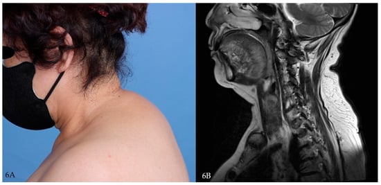 A 21-year-old woman with a visible buffalo hump underwent evaluation for cosmetic concerns. Laboratory tests revealed hypertriglyceridemia and included an abnormal liver function test (LFT). Her BMI was 33.5 kg/m2. She was referred to internal medicine and newly diagnosed with nonalcoholic fatty liver disease (NAFLD) (Figure 4A,B and Figure 5A,B).