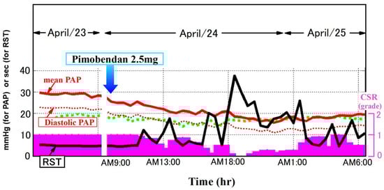 Temporal changes in RST during hospitalization for acute heart failure. In a representative patient, RST values gradually improved during treatment, including the initiation of oral inotropes, paralleling a decrease in pulmonary artery pressure and an amelioration of Chain–Stokes respiration (CSR). Reused with permission from Hidetsugu Asanoi.
