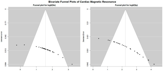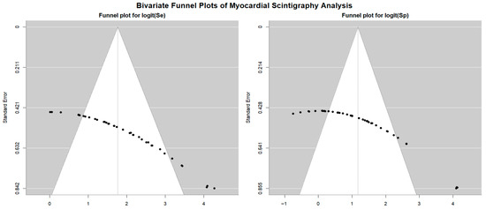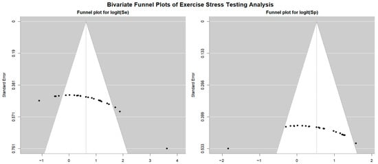 Bivariate funnel plots [23] were used to assess the risk of publication bias based on study precision. Egger’s generalized test, suitable for bivariate structures, was employed to statistically evaluate publication bias (https://doi.org/10.48550/arXiv.2209.07270) [24].