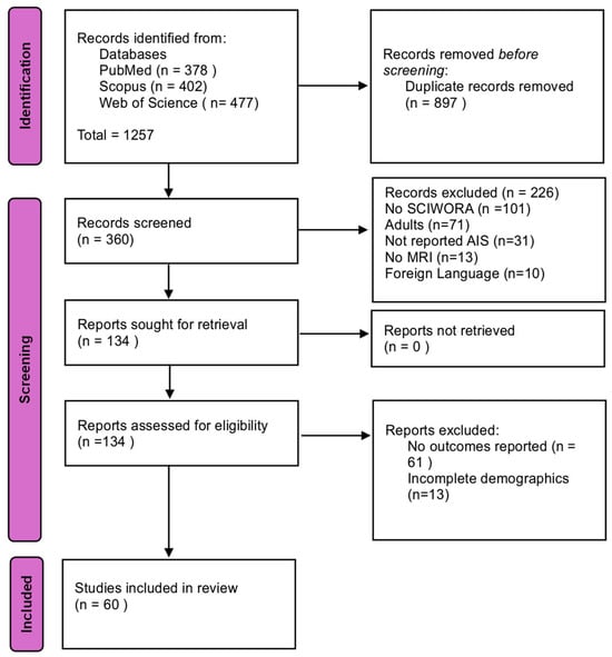 A systematic literature search was performed following PRISMA guidelines. Electronic databases (PubMed, Cochrane, Scopus, Embase) were searched up to June 2025, using terms including “SCIWORA,” “spinal cord injury without radiographic abnormality,” “spinal cord injury without radiological abnormality,” “spinal cord injury with normal radiographs,” “MRI-negative spinal cord injury,” “pediatric,” “children,” and “child,”. Studies were included if they: (1) enrolled patients aged < 18 years, (2) described cases of acute spinal cord injury following trauma, (3) had no radiographically visible fractures or dislocations on plain films/CT, and (4) provided data on demographics, mechanism, imaging, clinical presentation, management, or outcome. Reviews, animal studies, and case series/individual cases lacking sufficient detail were excluded.