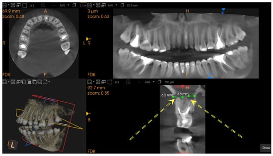 - Alshomrani, F. Cone-Beam Computed Tomography (CBCT)-Based Diagnosis of Dental Bone Defects. Diagnostics 2024, 14, 1404. [Google Scholar] [CrossRef]