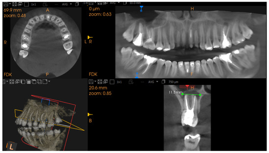 CBCT images were obtained using a Carestream CS 8200 3D (Carestream Dental LLC, Atlanta, GA, USA) with a voxel size of 75 μm and a 5 × 5 cm field of view. Exposure parameters were 90 kV, 10 mA, and 10.8 s, following the manufacturer’s endodontic imaging protocol.
