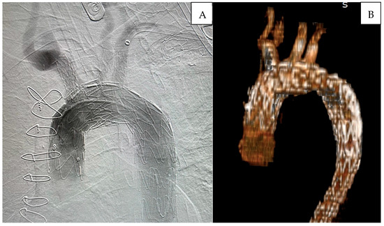 In our study, the indications for treatment included aortic aneurysms (5 patients) and aortic dissections (10 patients). Among the dissection patients, all had a history of prior ascending aorta surgery, such as Bentall procedures or tubular graft implantation, and required intervention due to residual dissection. These indications align with the literature, which highlights the complexity of managing aortic arch pathologies in patients with prior surgical interventions [3,4].