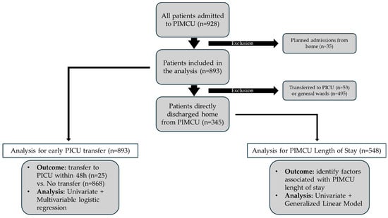 Study design and statistical analysis flowchart. PIMCU, Pediatric Intermediate Care Unit; PICU, Pediatric Intensive Care Unit.